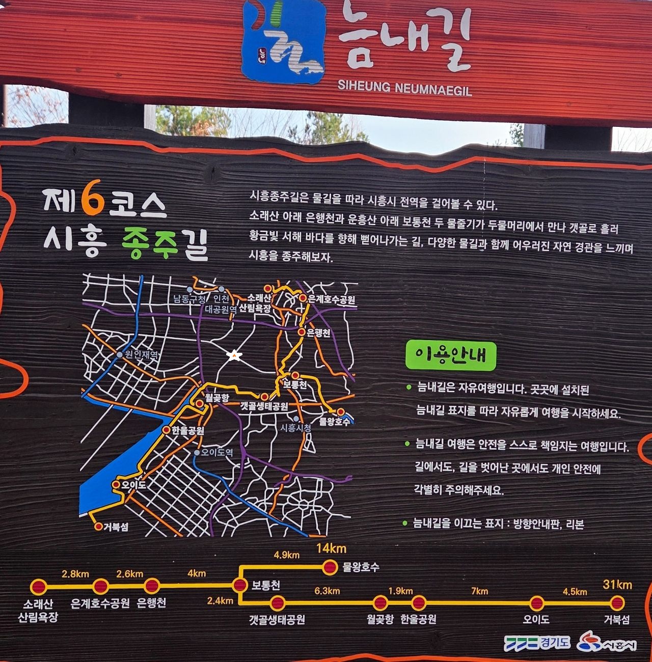 늠내길 6코스 장거리 종주길 31km, 신현역에서 끊어가기