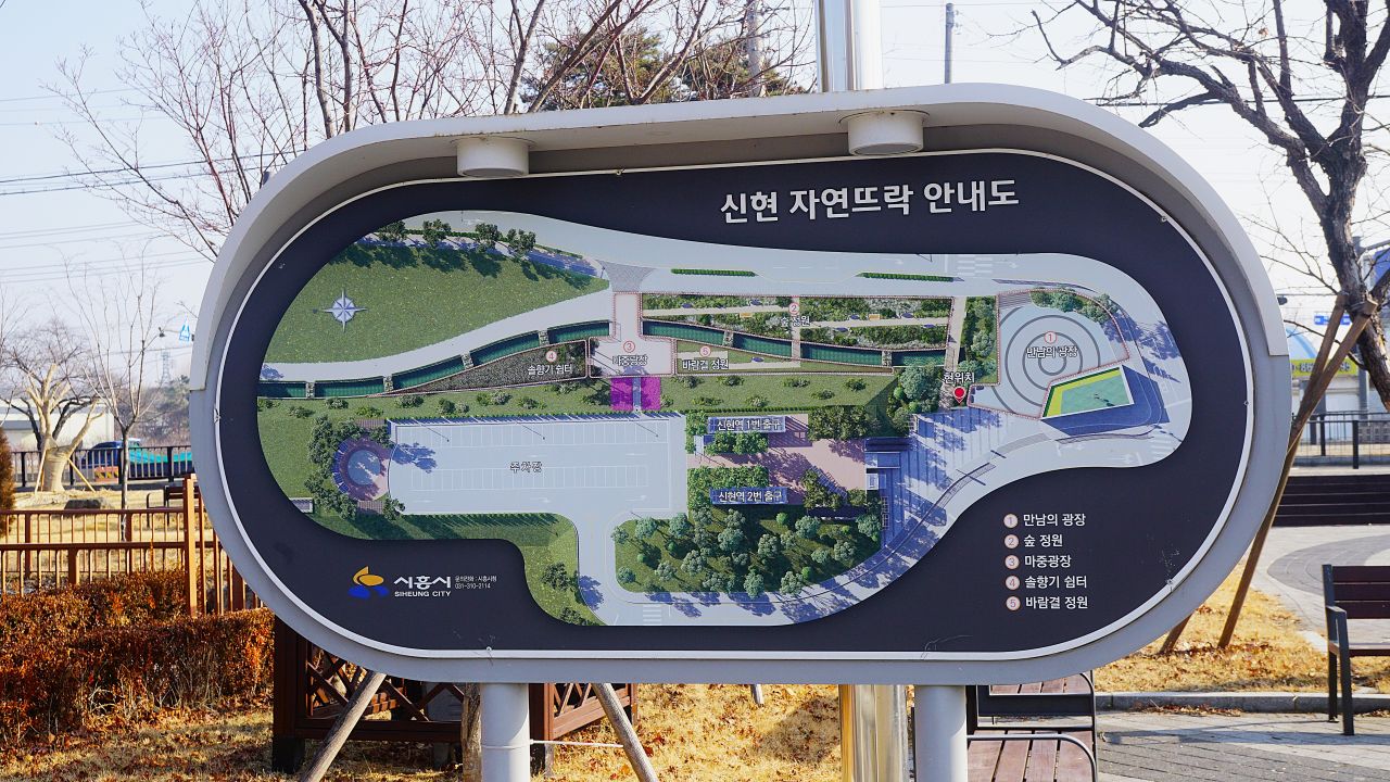신현역 2번 출구 나와, 우측길 건너 출발, 역 주변은 자연뜨락 공원이네요.
