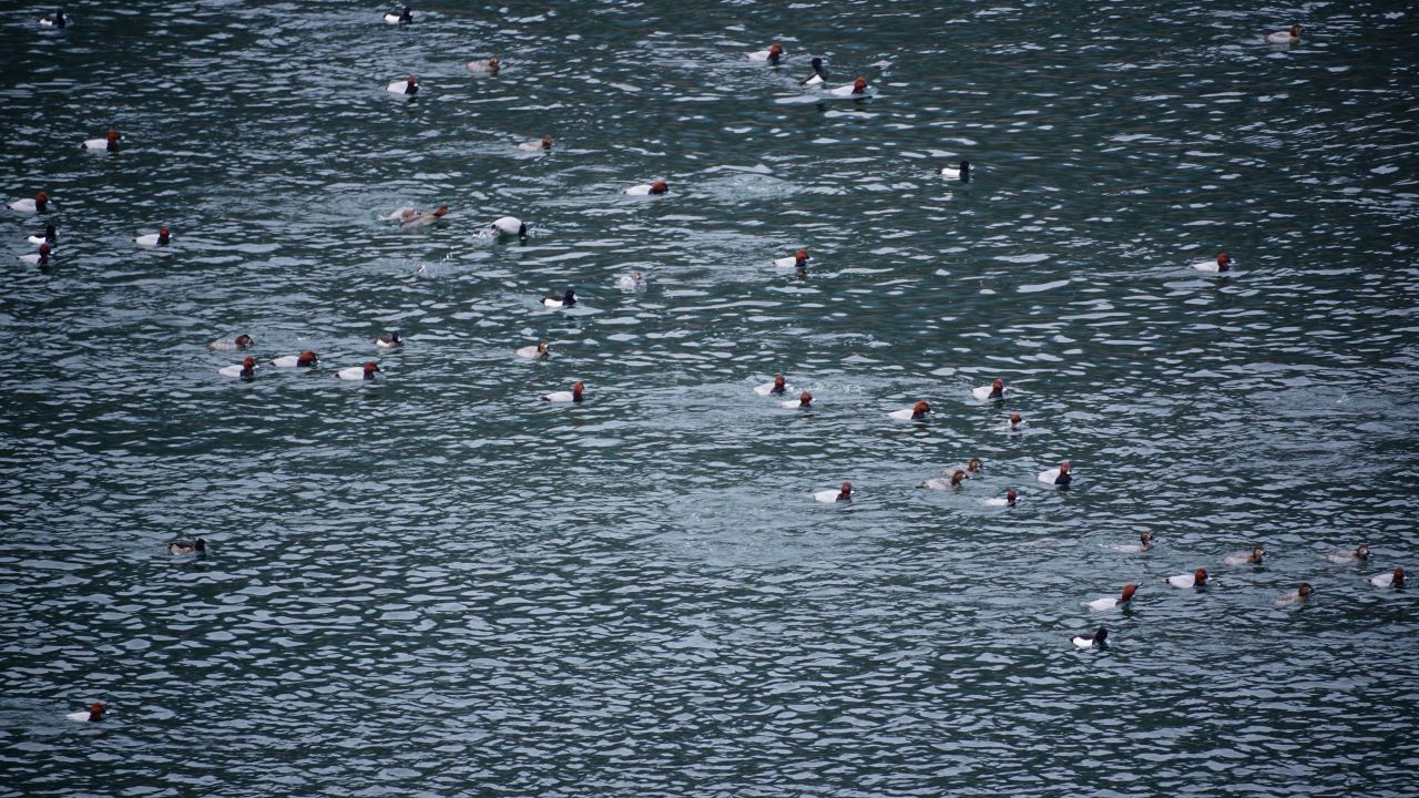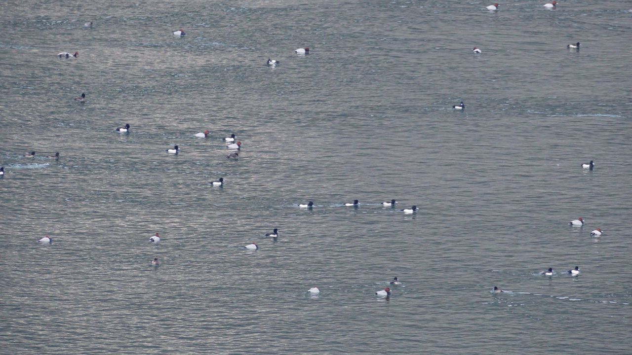 수백 마리의 오리가 보이네요, 비오리인가.. 다시 보니 붉은머리 흰죽지,