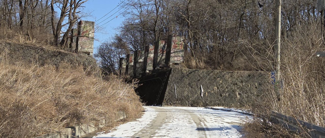 고갯마루에 설치된 대전차 장애물 지나 내리막을 내려가면,