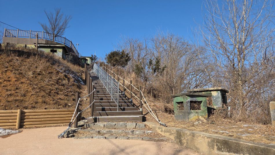 전망대와 방공호 전시관을 돌아보고 내려가는 길, 그대로 내려가면 로동당사이지만, 오던 길