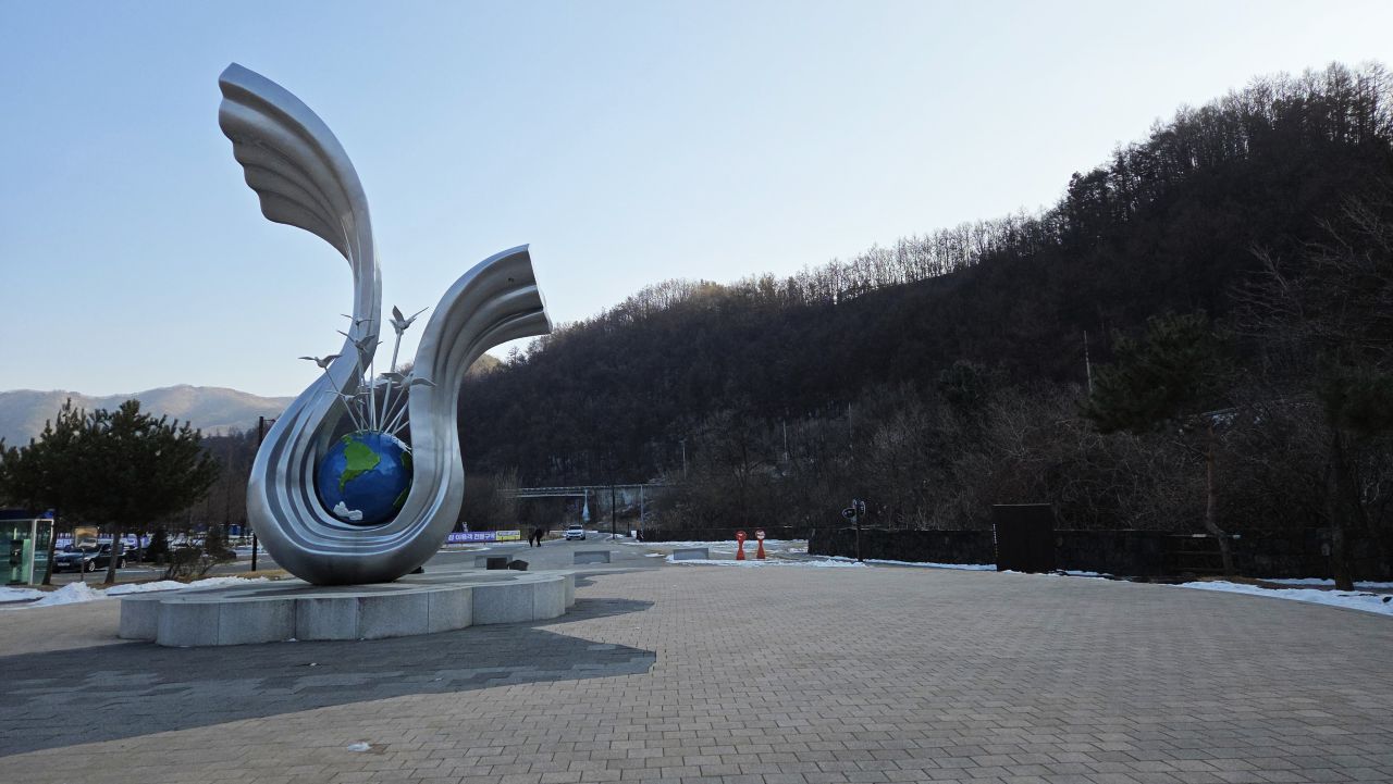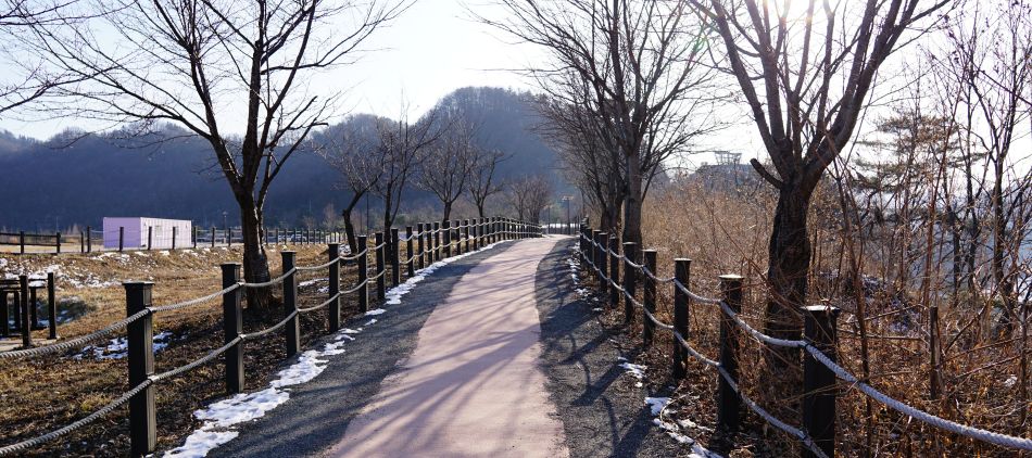 데크길은 꽁꽁 얼어있지만 깔려있는 플라스틱통이 살짝 말랑말랑한 촉감이 발바닥에 느껴집니다.