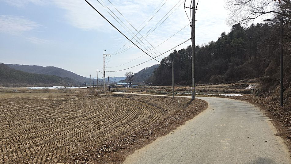 전원주택들이 눈에 뜨이는 마을길입니다.