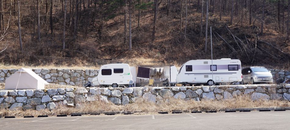 주차장에 수십대 주차가 가능해 보이는 대형 캠핑장인데 주차장은 비어 있습니다.