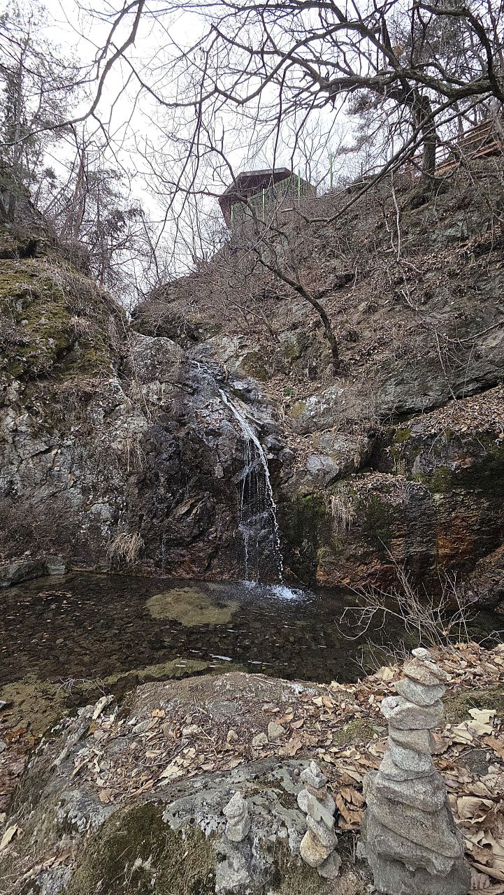 수량이 적어 폭포는 가는 물줄기로 보이네요.
