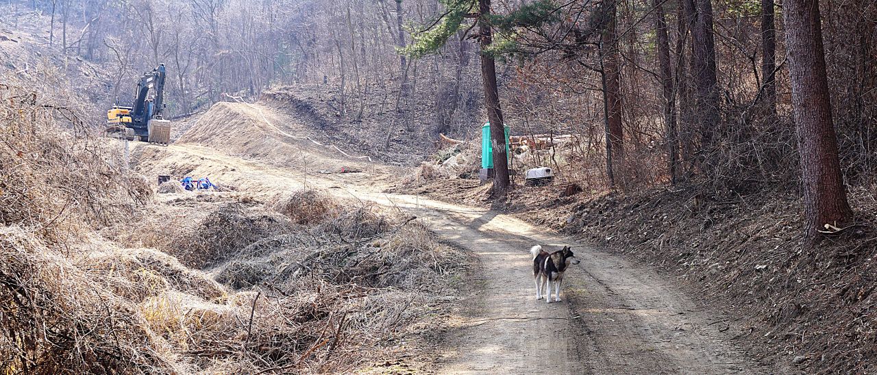 벌목되어 목재들이 쌓여 있지만 벌목이 주된 공사는 아닌듯한데요.