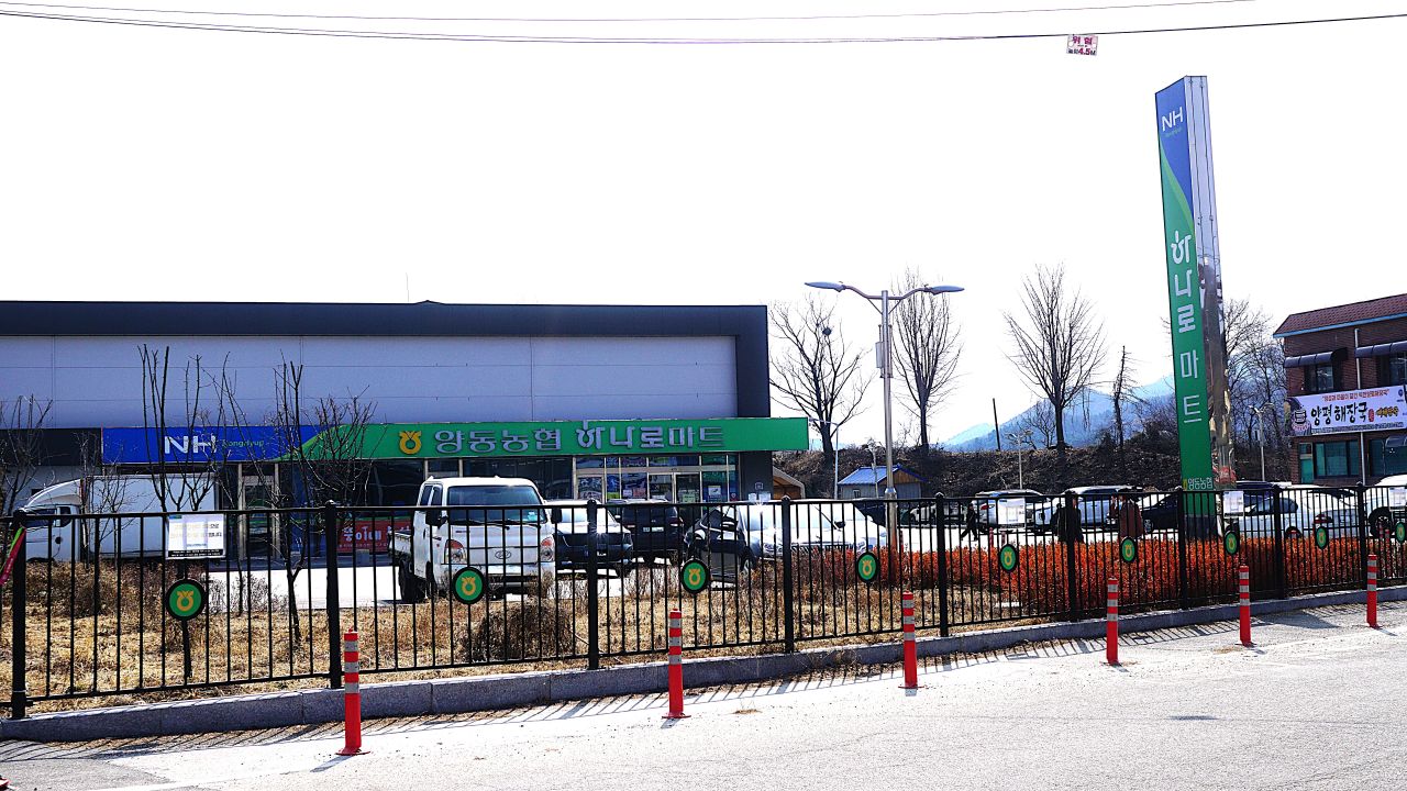 11:57분, 양동농협하나로 마트 우측 옆에 31코스 안내판과 함께 파란 스탬프 함 기다리고 있습니다.
