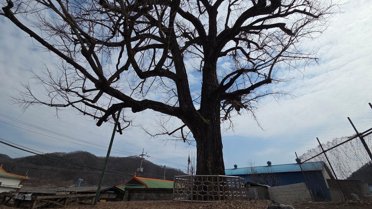 마을에 우뚝 솟은 은행나무 보이죠.