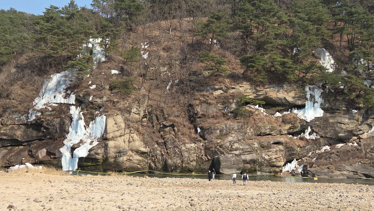 네, 겨우내 꽝꽝 얼어붙었던 빙벽이 녹으면서 남아 있는 잔빙 맞네요.