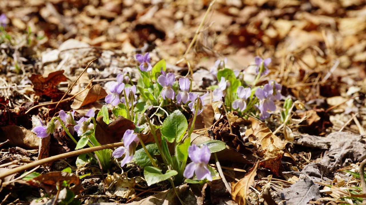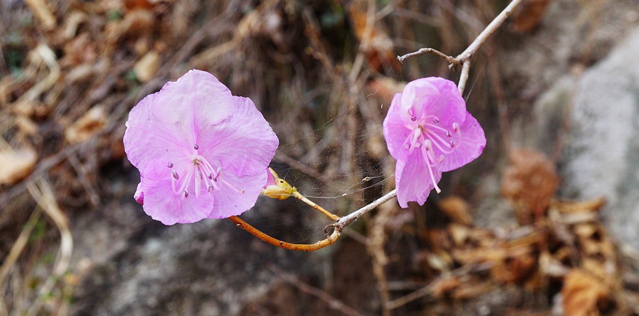 길가에 활짝 핀 진달래꽃과 제비꽃, 뱀딸기꽃, 올괴불나무꽃을 만난 구간입니다.