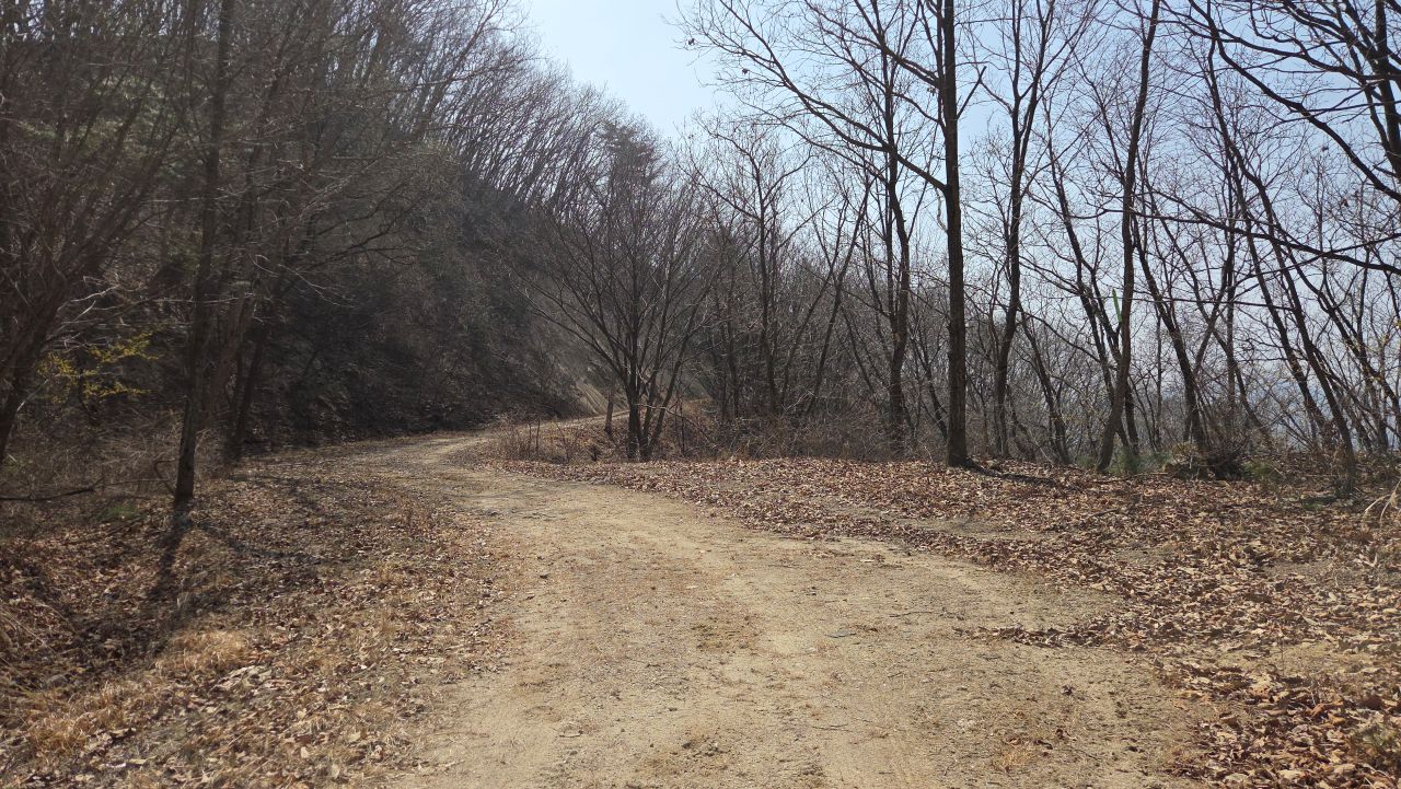 이 고개에 아무런 표시도 없지만 아마도 코스안내판에 표시되어 있는 밤나무재가 아닐까 싶은데요. 해발 400~500m 높이의 산길입니다.