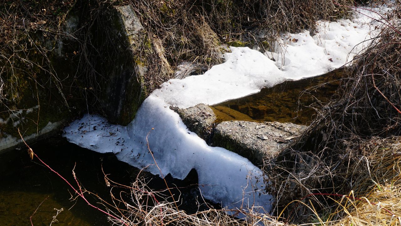 산자락 실개천 응달진 곳은 잔설, 잔빙이 남아 있습니다.