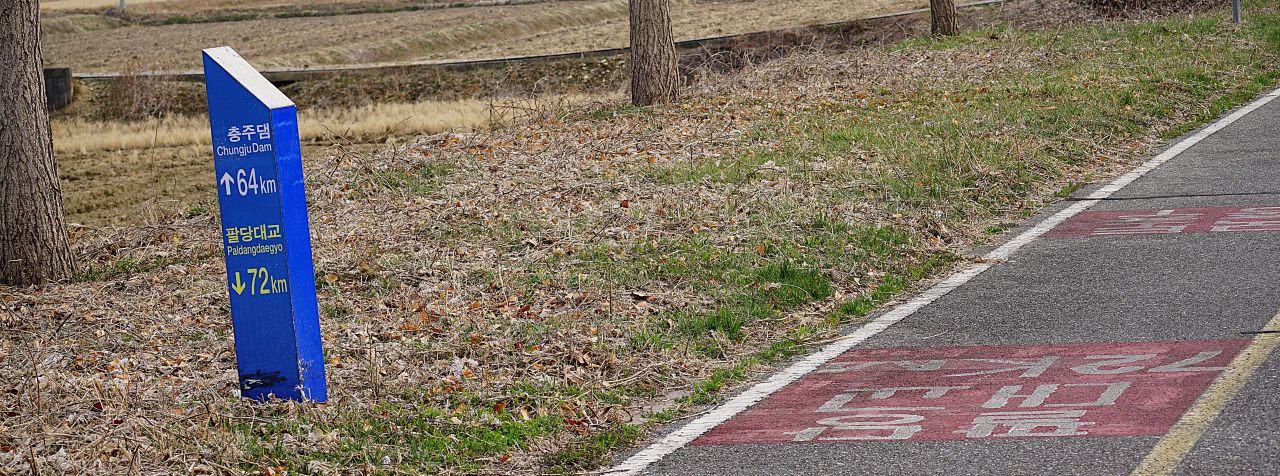 팔당대교와 충주댐 사이의 중간지점 이정목, 충주댐 멀지 않습니다.