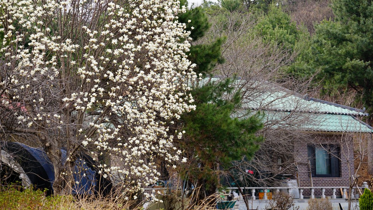 마을길에 자목련이 부풀어 터질 듯하네요.