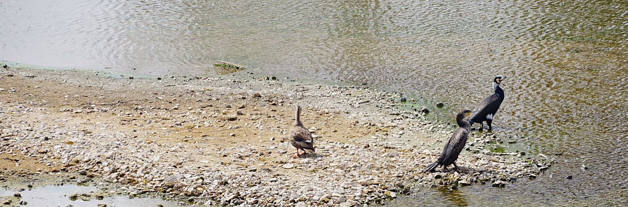 다시 금당천 둑방길입니다. 모래톱에 한가로운 가마우지와 오리.