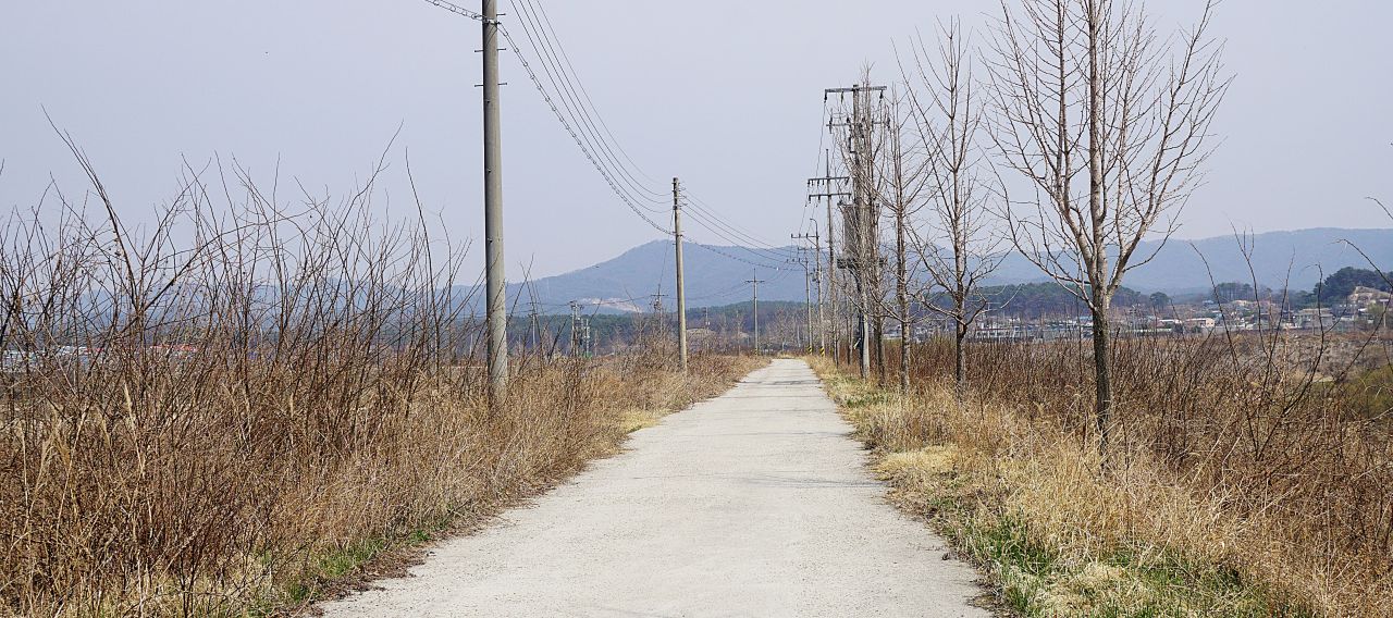 금당천 둑방길을 따라갑니다. 가정리 들판, 오후의 봄볕이 미세먼지에 번져 들었네요.