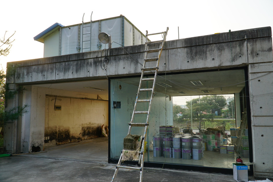 페인트 통도 많고 냄새도 많이 나고.. 무슨 수리 작업 중인가 봅니다.