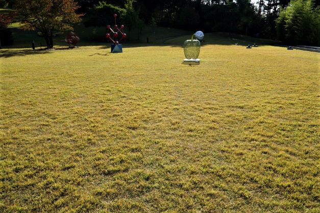 잣나무 숲으로 둘러싸인 1만 7천여 평의 잔디광장에는,