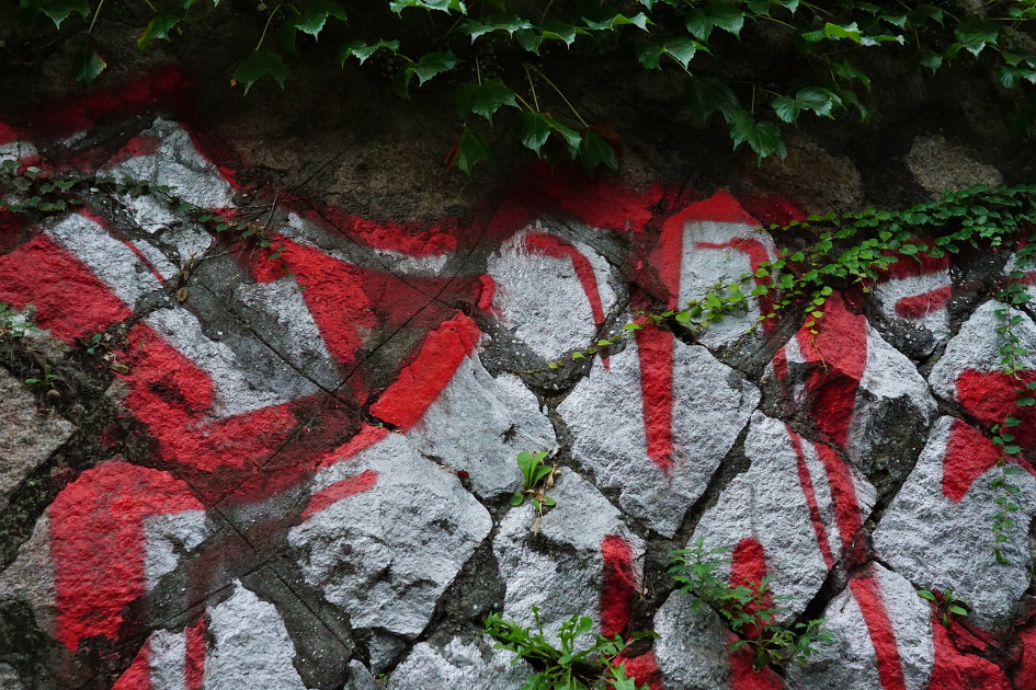 돌담에 그린 왕거미도 프린팅으로 보여요..
