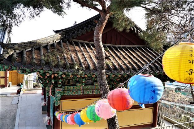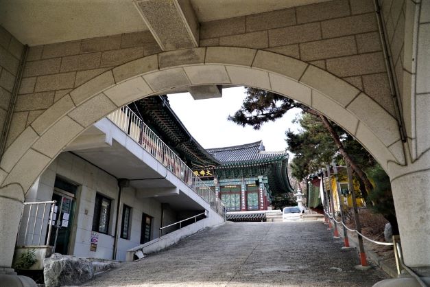 고려대 안암병원 후문으로 들어와 가다가 문숙의학관 앞에서 캠퍼스길을 벗어나 마을로 내려가 좁은 골목길을 구불구불 돌아가면 개운사 일주문입니다.