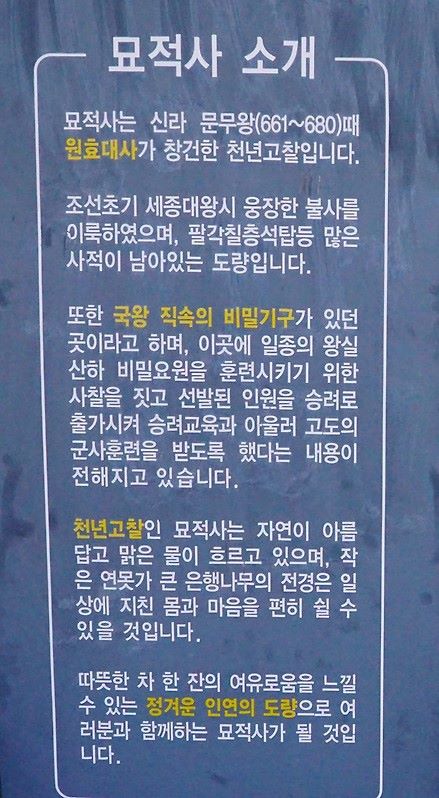 묘적사 입구에 표지석입니다.