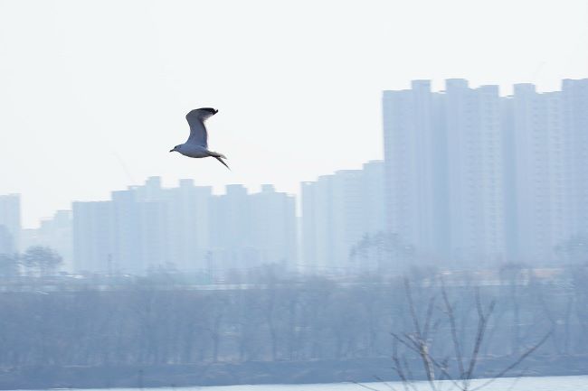 한강에 갈매기도 날고 있습니다.