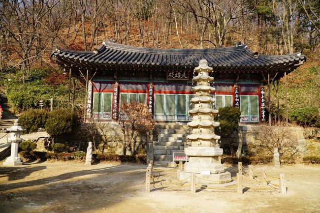 대웅전 앞 8각 다층석탑은 유형문화재 279호로 지정되어 있습니다.