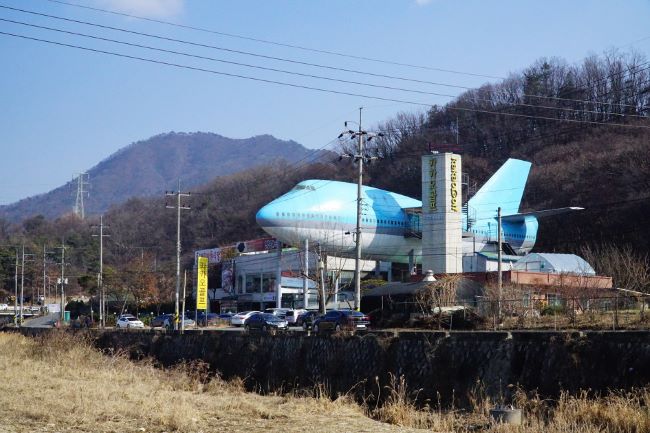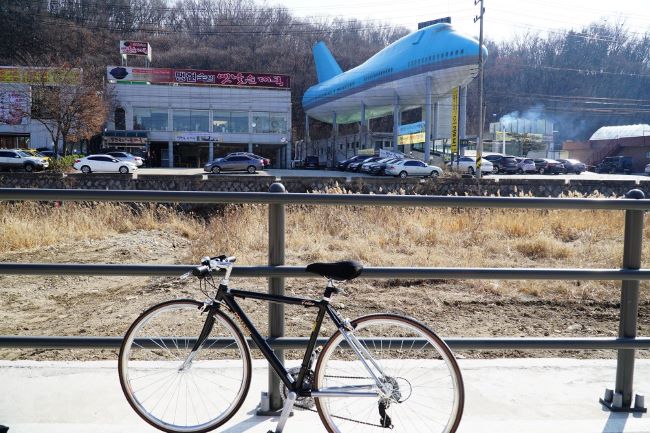 월문천 따라 올라가다 보면 보이는 하늘색 비행기 한 대, 항공박물관이었었는데,
