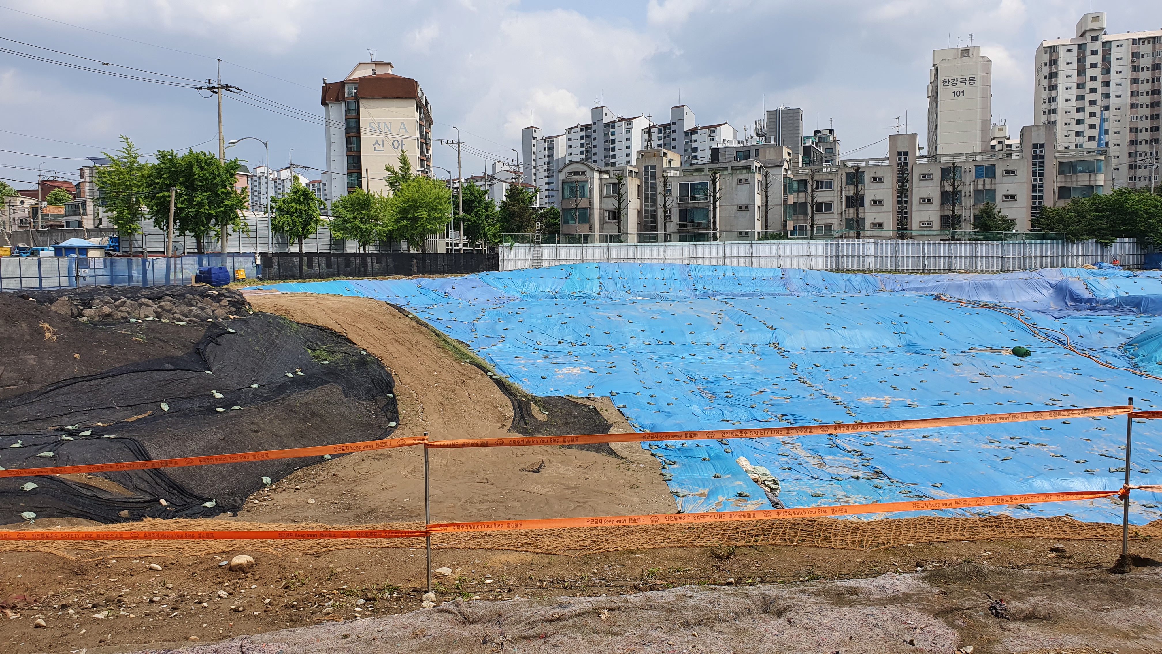 서(西) 성벽은 가림막으로 가리고