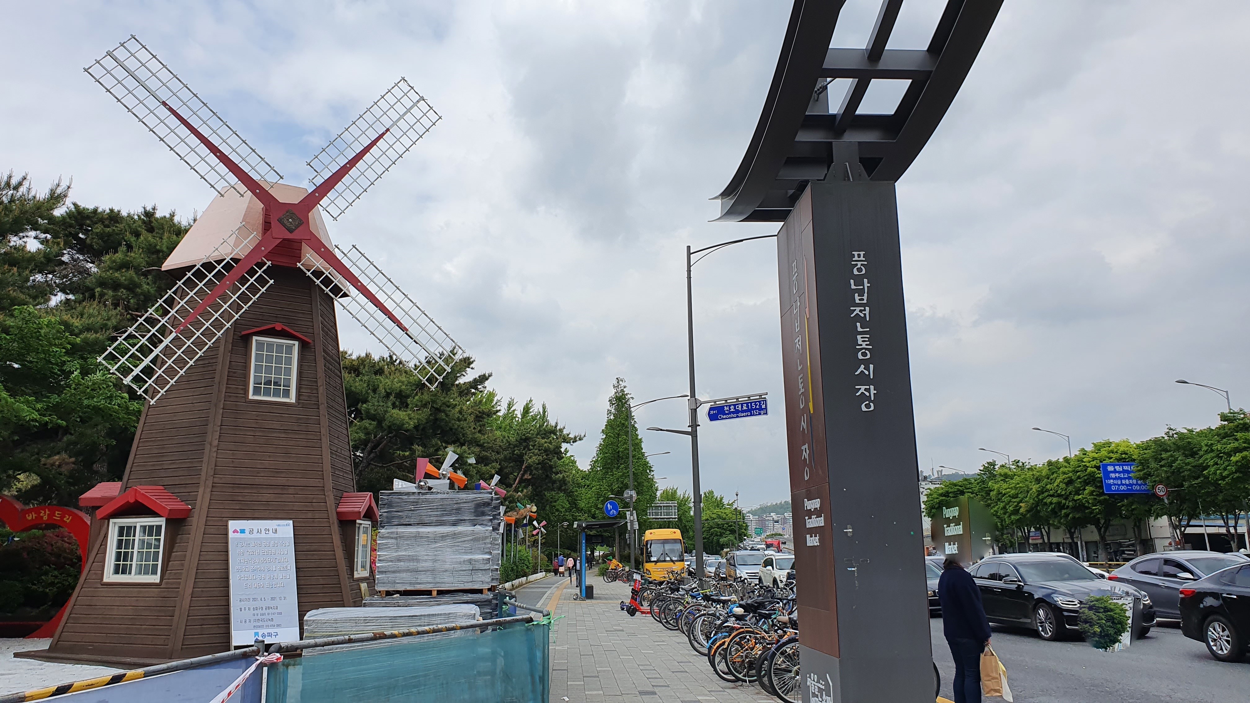 천호역 9번 출구에서 천호대교 쪽으로 가까운 길가에 풍납전통시장 입구에 조형물이 세워져 있죠.