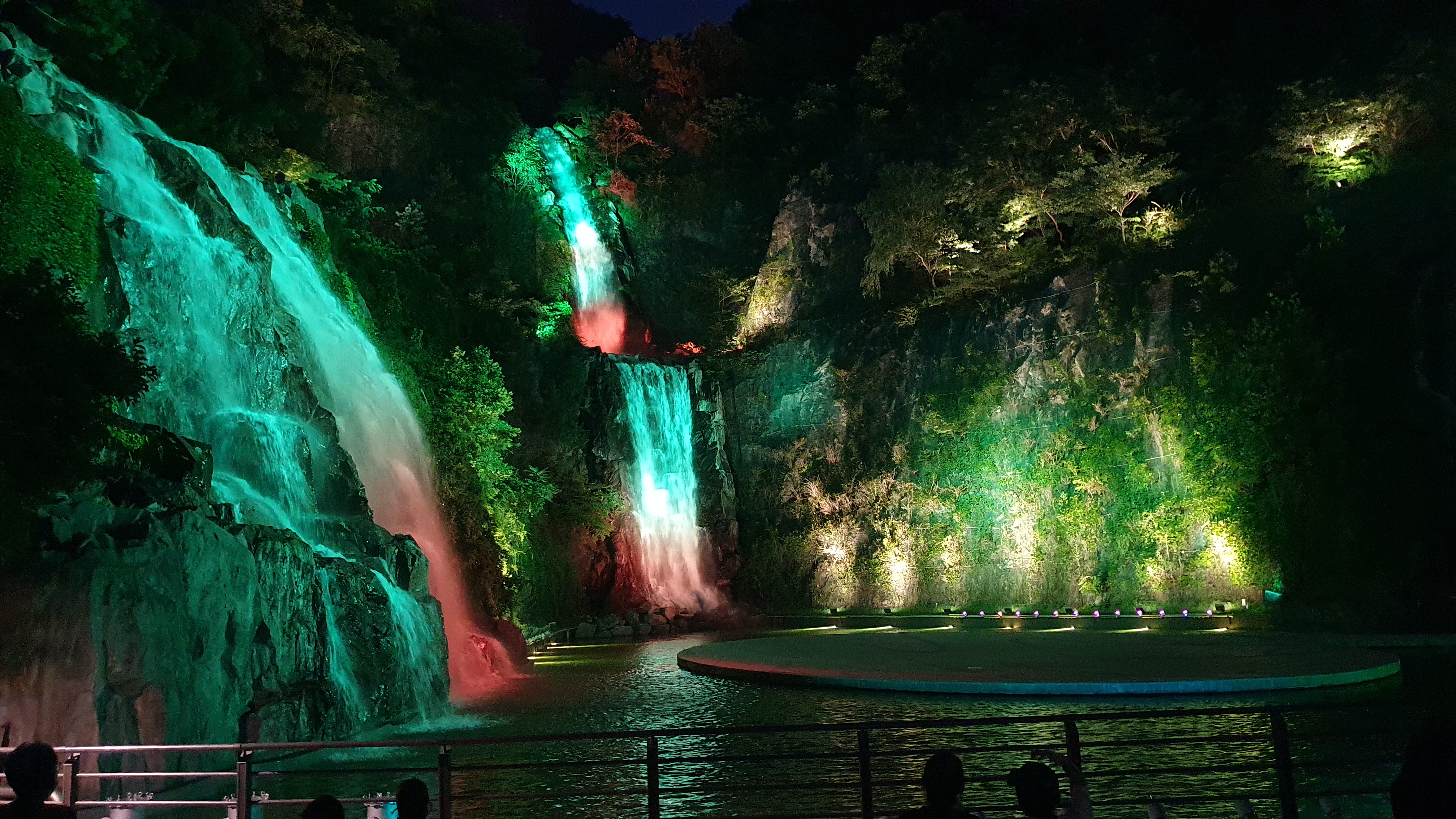 밤하늘 어둠을 수놓는 현란한 조명아래 오색 폭포수가 춤을 춥니다. 가운데 가장 높은 51m의 용마폭포, 왼쪽에 21m 높이의 청룡폭포, 우측에 21m의 백마폭포, 거대한 세(3) 폭포에서 한꺼번에 쏟아지는 물소리는 한방에 한밤의 무더위를 날려 보내주네요. 야간조명은 2019년 서울특별시 좋은빛 상 공모전에서 최우수상을 수상하여 그 화려한 아름다움이 인정된 여름날 야간산책의 명소입니다.