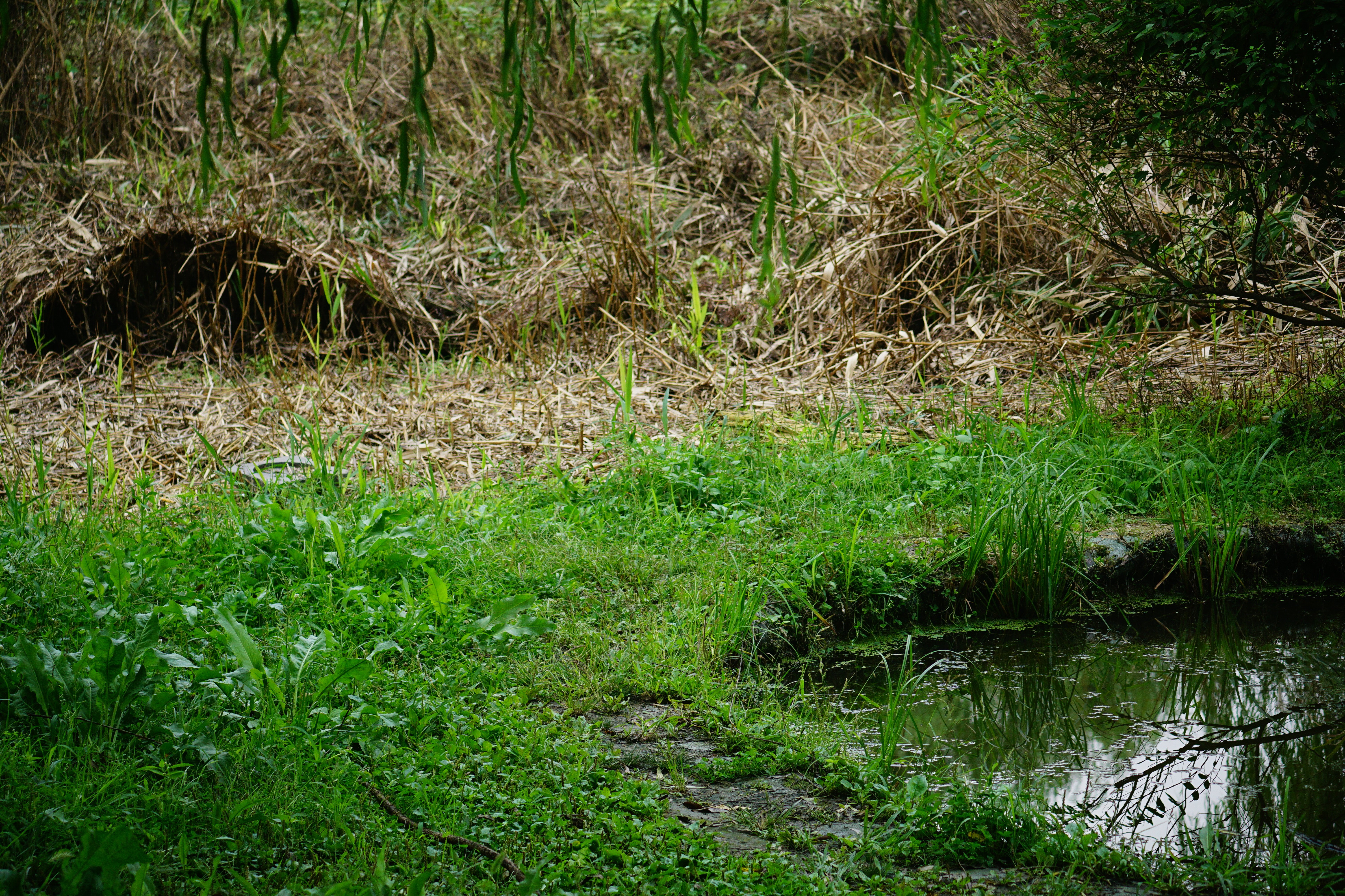 그래서 물웅덩이 주변을 살펴봤죠. 가운데 움푹 들어간 풀숲이 녀석이 자주 지나다닌 흔적이 아닐까 싶은데, 대낮에 녀석이 어디 나타나겠어요, 하지만 이곳에 살고 있는 게 분명하니까, 혹시 모르잖아요, 엉덩이라도 슬쩍 보여줄지..