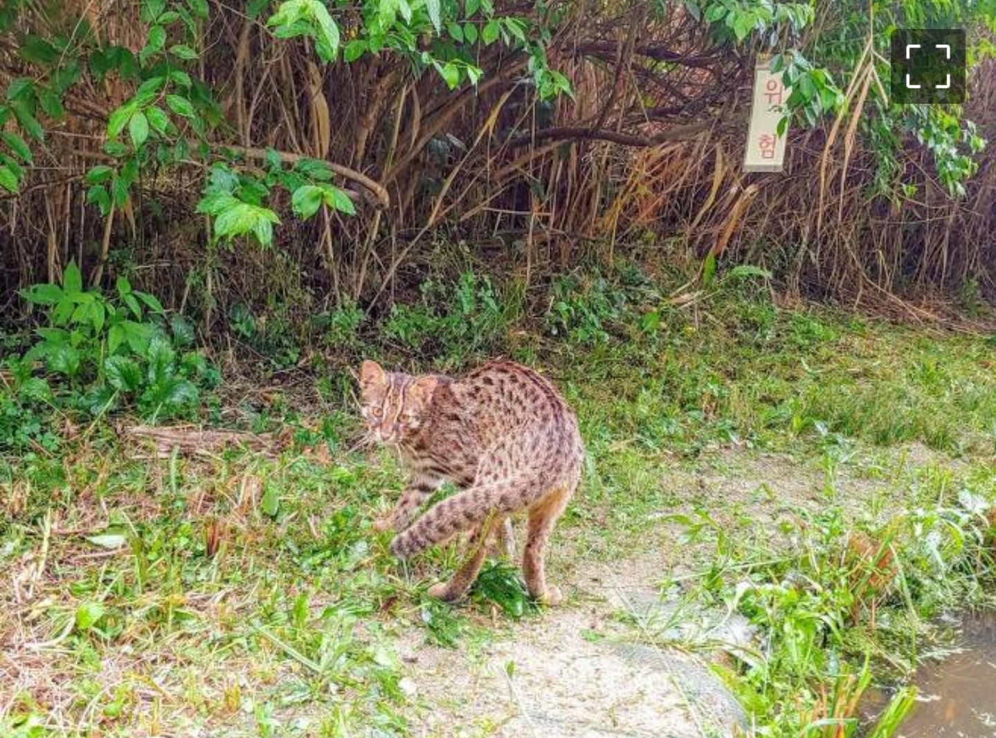 바로 요 녀석이 삵입니다. 고양이 닮았지만 훨씬 크고 고양이는 적수가 못 됩니다. "이번에 발견된 삵은 어미에서 독립한 새끼 삵으로 물웅덩이 주변에서 사냥하는 모습이 목격되었다고 한다. 암사생태공원에서 처음으로 삵의 흔적이 확인된 것은 지난해 6월부터다. 한강변 목재데크길, 탐방로, 관리사무실 주변 등지에서 삵의 배설물이 발견되었다."<사진 및 설명 출처: 조선일보 2021 09 24 '멸종 위기 동물 삵 암사생태공원에서 볼 수 있다>