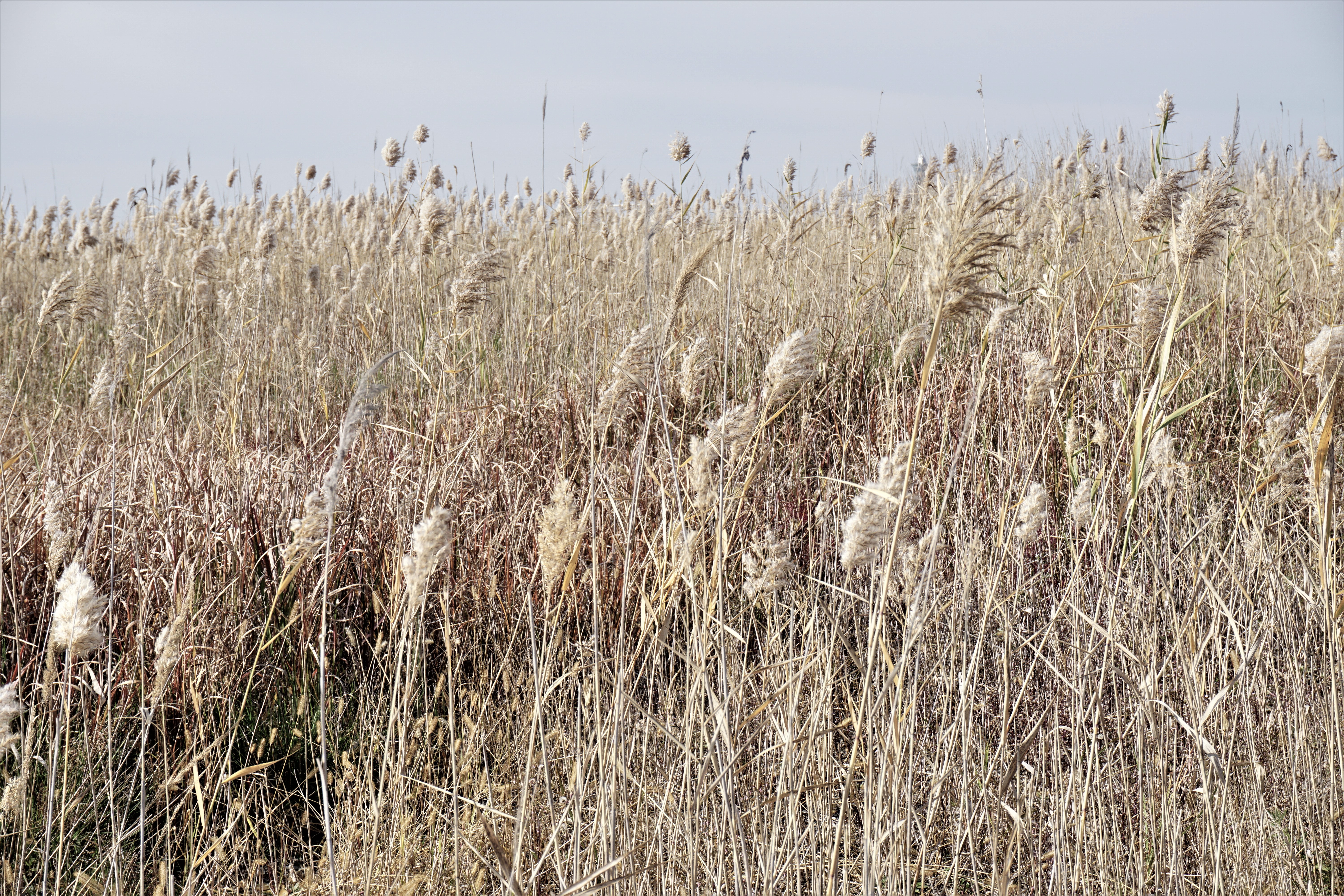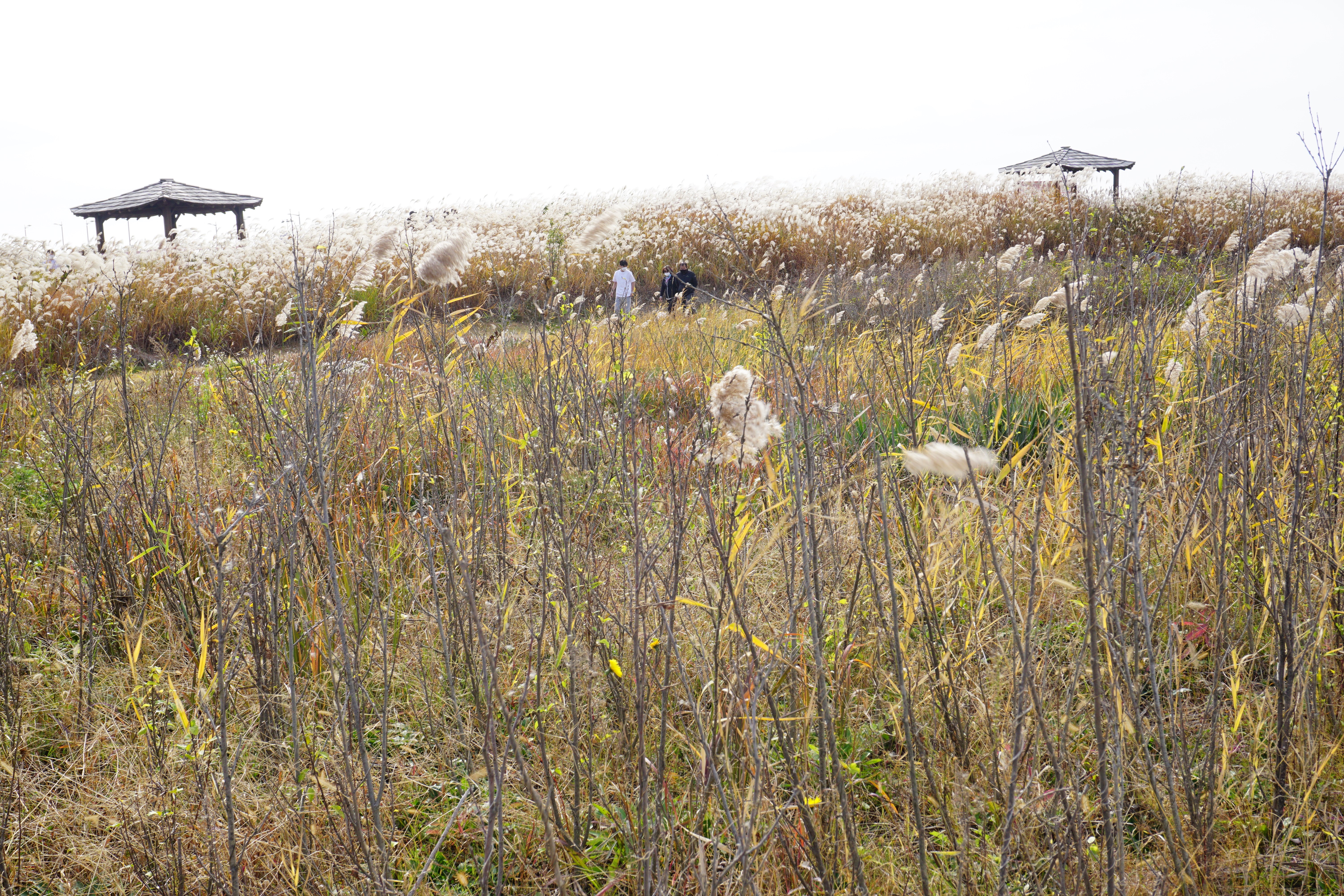 늦가을 햇빛에 눈부시게 반사되는 하얀 갈대