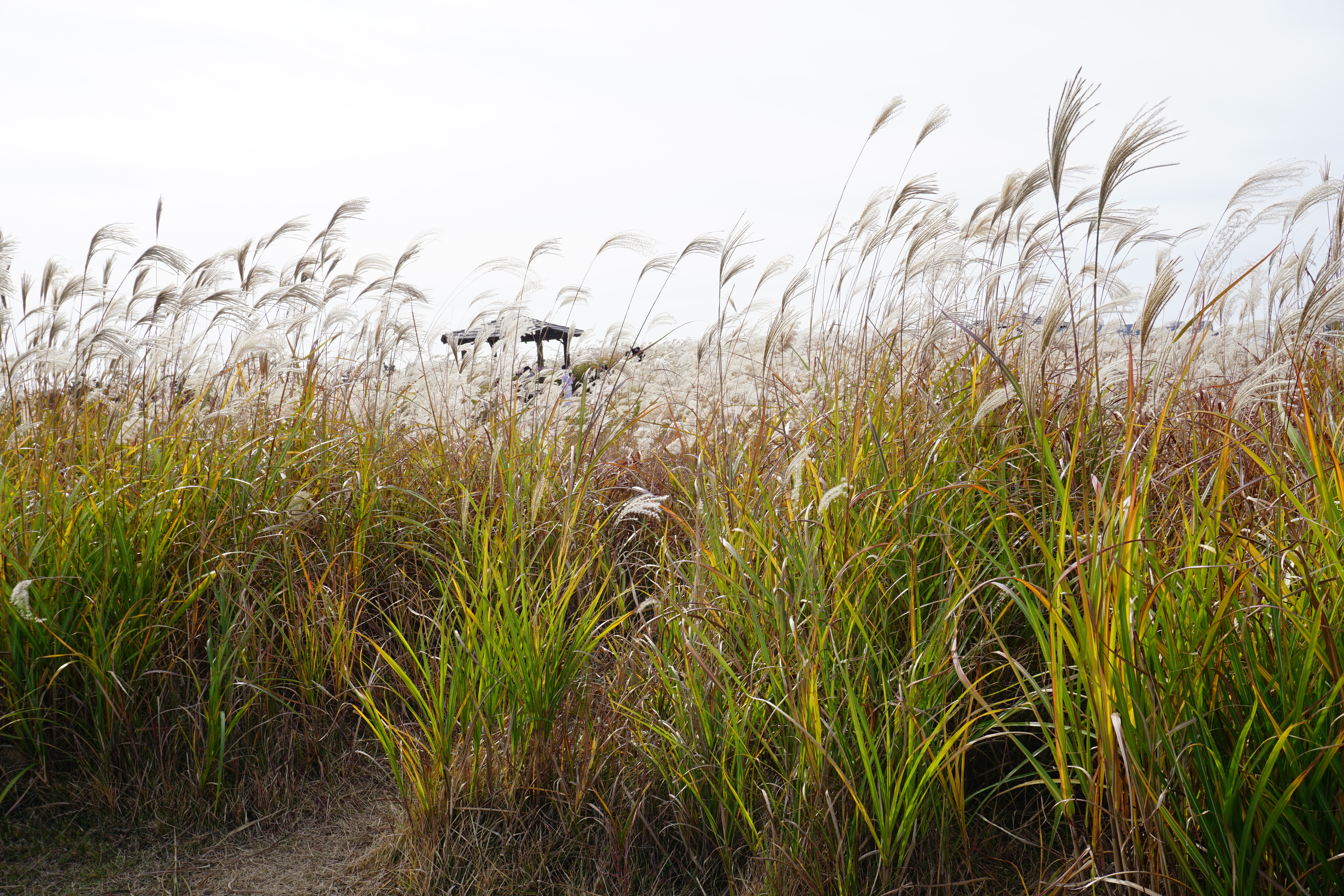 들판에 바람은 하늘거리고 갈대는 춤을 추는 듯,