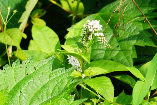 문제의 삼거리로 돌아왔습니다. 세(3) 갈래길이죠. 가운데 임도로 올라갔었는데, 오른쪽으로 진행했어야 했나 봅니다. 한가운데에 이정표가 있죠. 화살표는 직진도 아니고 오른쪽도 아닌 45도 방향, 일단은 오른쪽으로 가 봤었죠. 개울 건너가자마자 잡목이 우거진 흐지부지한 길, 내비를 띄워보니까 등산로에서 멀어지고 있었습니다. 그래서 다시 이정표로 돌아와 가운데 임도를 따라 올라가니 내비에 뜬 등산로에 합류되어 그렇지 코스 백! 하고 임도를 따라 계속 올라간 것이었는데 얼마 안 가 임도 끝!, 이후 길은 흐지부지, 울창한 수풀에 실종, 결국 헤매게 된 것이었습니다. 아무튼, 후속 이정표를 못 봤으니 임도 끝나는 지점에서 이곳 삼거리로 되돌아와야 했던 것인데, 무슨 생각을 했는지 무작정 서둘러 없는 길을 헤치고 진행했던 것 같습니다. 이젠 너무 늦은 시간, 내려오는 길에는 산딸기도 보이고, 들꽃도 보이네요.