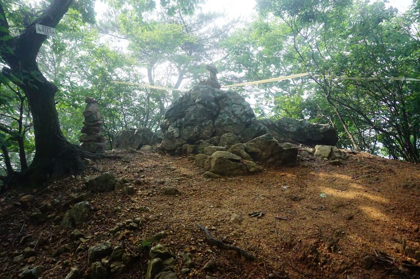 왼쪽에 큰 나무에 명지지맥 613m라는 패찰이 붙어있죠, 그 앞에 바위를 기차봉이라 하는가 본데, 설명문은 없는데요.