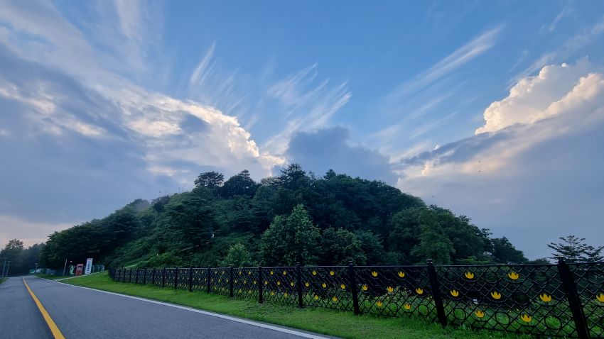 너무 멋질 것 같던 하늘의 구름이 희미해졌어요, 노을을 기다려 보는 건, 패스, 상천역까지 4킬로, 걸어가기로 합니다.