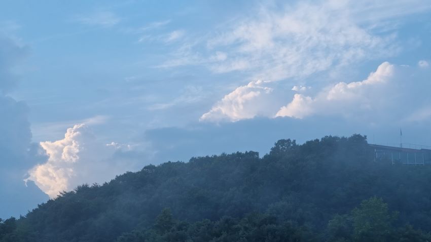 16:44, 비가 잦아들면서 안갯속으로 햇빛이 슬쩍슬쩍 들더니,