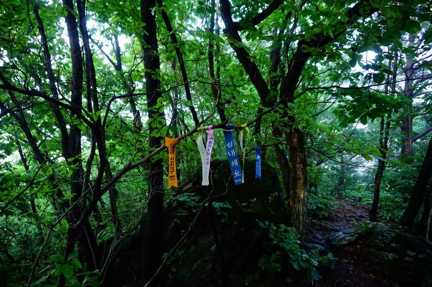 호명호수(전망대)에서 접어들고 오던 우산 집어넣고 비옷도 벗어 물기 털고 배낭에 접어 넣었습니다.