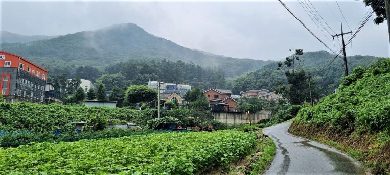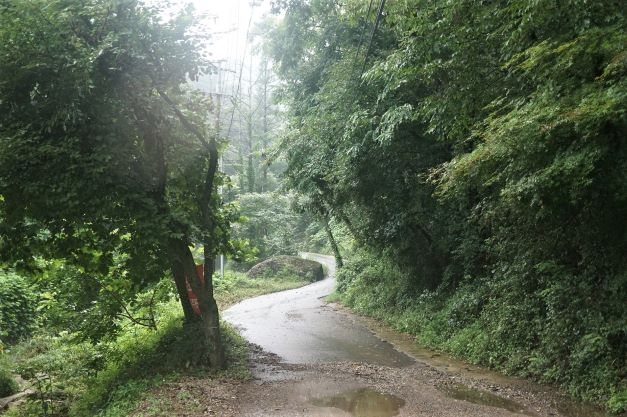 오르막 길이지만 자전거로도 올라올 만한데요. 비 맞아 촉촉한 잡초들이 싱싱하고 왼쪽