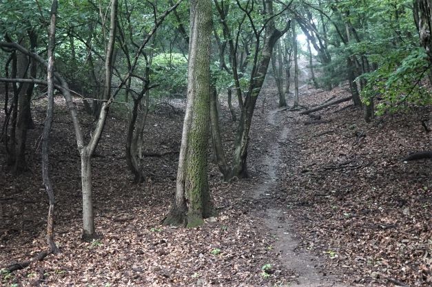 계곡을 벗어나 오솔길이 분명해지면서 앞에 능선이 보입니다.