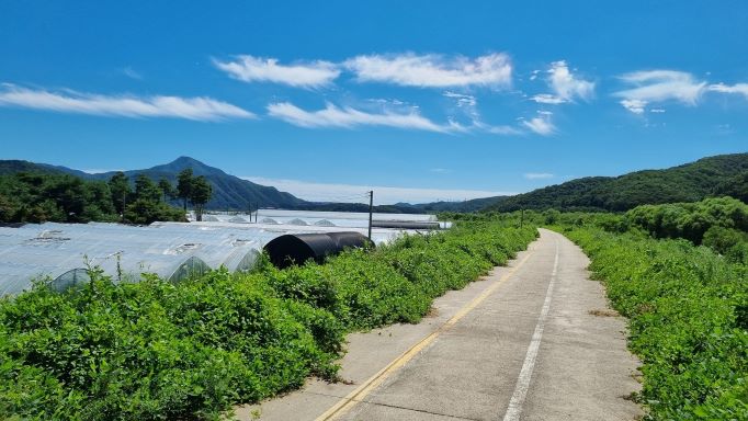 마을회관 뒤로 올라가면 신축 빌라단지, 그 사잇길로 올라갈 것 같은 길인데