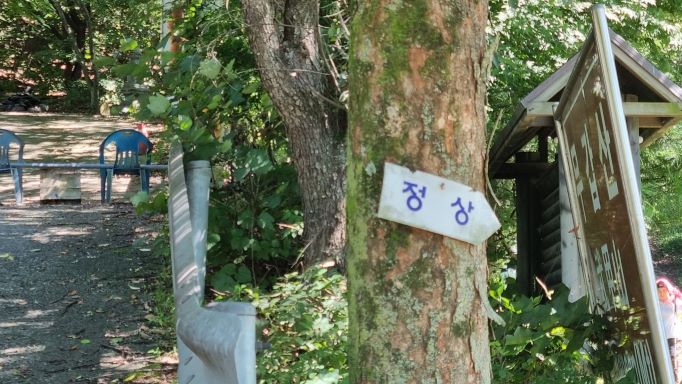 정상 1km 전방 이정표 옆 쉼터에서 잠시 쉬었습니다.
