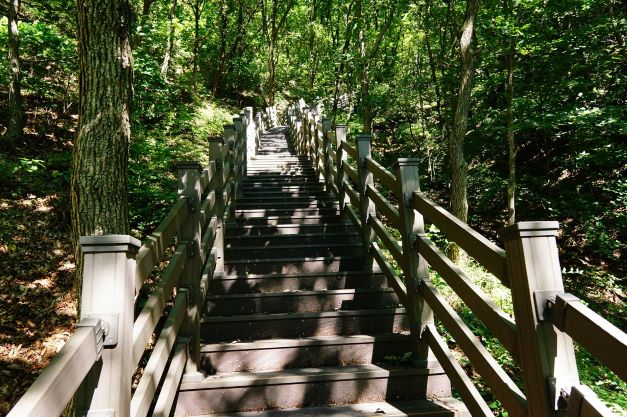 계단길 시작, 오르고 또 올라도 계속 이어지는 계단길, 세어보니 532개. 계단은 놓은 지 2~3년 되지 않은 듯, 깔끔합니다.