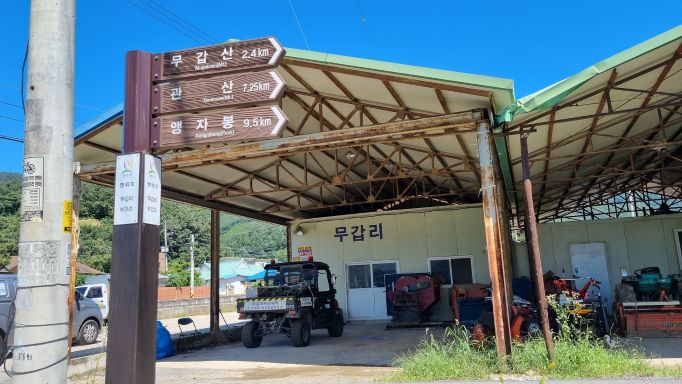 자전거길에서 앞에 우뚝 솟은 무갑산을 바라보며 달리다 산아래 무갑리로 진입, 마을회관 앞에 자전거 거치시켜 놓고 걷기 산행 출발합니다.