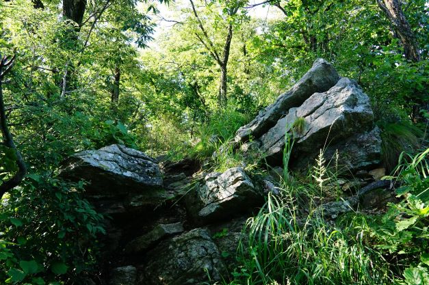 다시 시작된 바윗돌 구간, 살짝 내리막길 같은 착각이 드는 완만한 오르막길이네요.