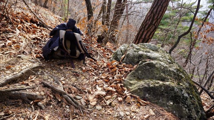 그러다 발견한 그럭저럭 앉을만한 바위 하나 발견, 배낭 내려놓고 쉬어가기로 합니다. 정상까지 500미터 남은 지점입니다.
