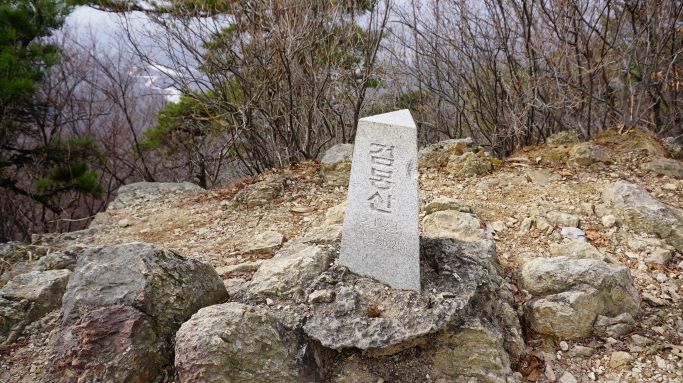 칼을 세워놓은 듯하다 해서 칼봉, 검봉산(劍峰山)이라 한다죠. 그런데 과연 그렇구나는 아닌데요. 아무튼 오늘 오르고 내려온 코스에는 날카로운 큰 바위 하나도 없는 흙산 능선길이었습니다. 갈잎 덮인 능선은 좁아서 손날을 세운 듯한데, 칼을 세운 게 아니라 칼날을 눕힌 능선, 그만큼 좁은 능선, 그런 칼봉으로 이해하려 합니다.