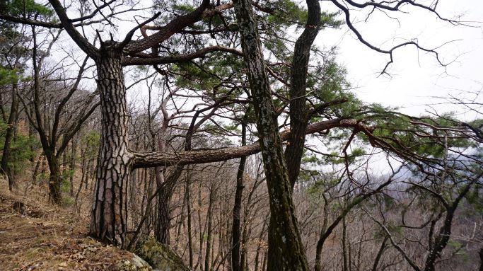 다시 보이는 소나무 거목들, 크고 굵기만 했지 명품송이라 할만한 품위는 안 보이는 소나무들입니다.